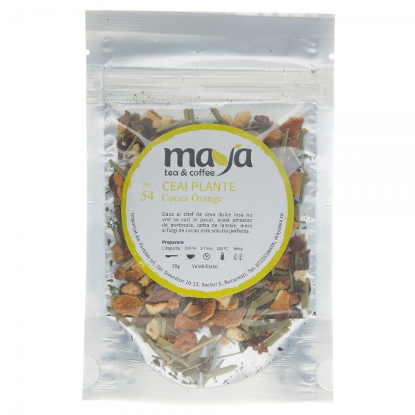 Daca ai chef de ceva dulce insa nu vrei sa cazi totusi in pacat, acest amestec compus numai din plante este solutia perfecta. Dulceata portocalelor si bucatile fine de coaja de arbore de cacao sunt o combinatie consacrata. Iar iarba de lamaie, frunzele de urzica si de mure, merele si fulgii crocanti de cacao ii dau acestui ceai un plus binevenit de energie. O alternativa delicioasa care se poate transforma in obicei nevinovat!
