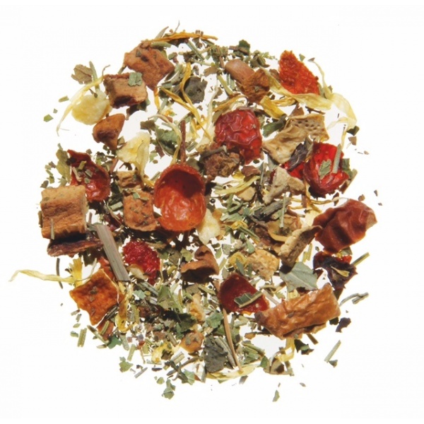 | Ingrediente | mere, macese, verbina, flori de galbenele, coji de lamaie și portocale, lamaie granulata, aroma, frunze de capșune și mure, rozmarin. |