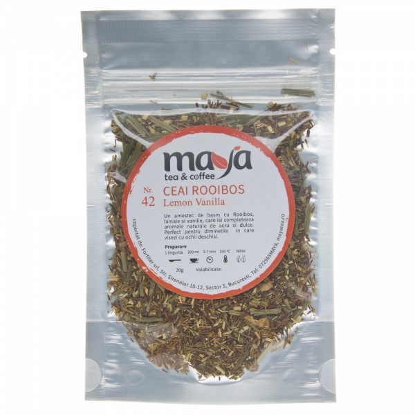 | Ingrediente | ceai rooibos, lemon grass , coaja de lamaie, aroma naturala |